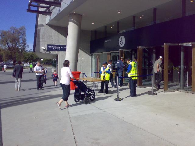 Kangaroos v Melbourne Em, and Will in the pram at the MCG