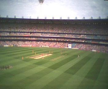 Cricket at the MCG with Johnny Watson then dinner with Bill and Pinky. Passed Branchy's house on the train... that's his blury white van.
